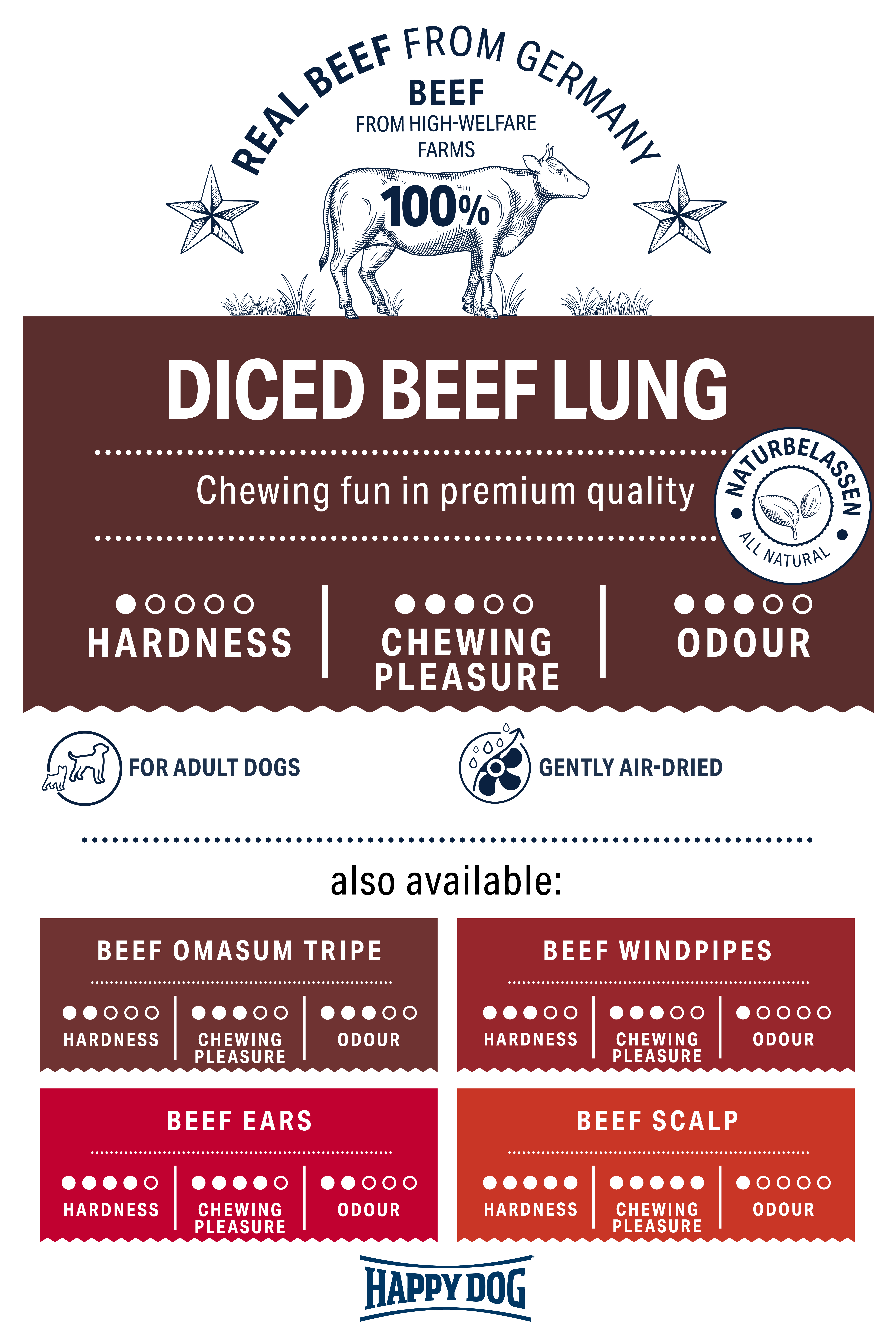 • 100% natural beef lung