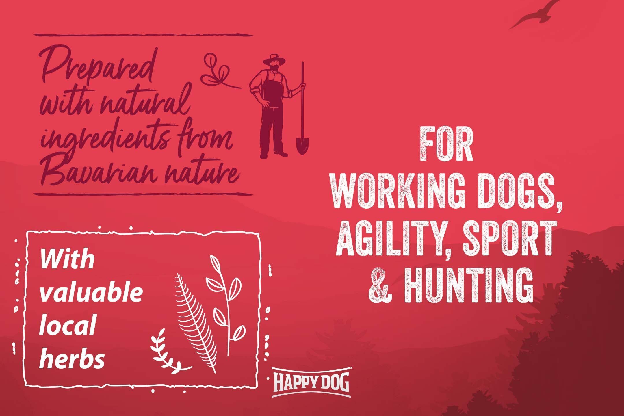 This balanced, species-appropriate complete food, made from the best natural ingredients from Bavaria, has been developed to take good care of adult dogs with higher energy requirements. The combination of high-value protein from poultry and fish, together with valuable Omega-3 and Omega-6 fatty acids from sunflower oil and rapeseed oil, delivers readily available energy without over-burdening the system. Whole-grain products are valuable sources of fibre. They also regulate the intestinal functions and promote digestion, and can support intestinal health. Whatโs more, they supply numerous B vitamins and minerals, such as magnesium, iron, selenium and zinc, and are full of complex carbohydrates. This tasty formulation also contains valuable locally-grown herbs. NaturCroq Active is the perfect food for all dogs with higher energy and protein requirements.