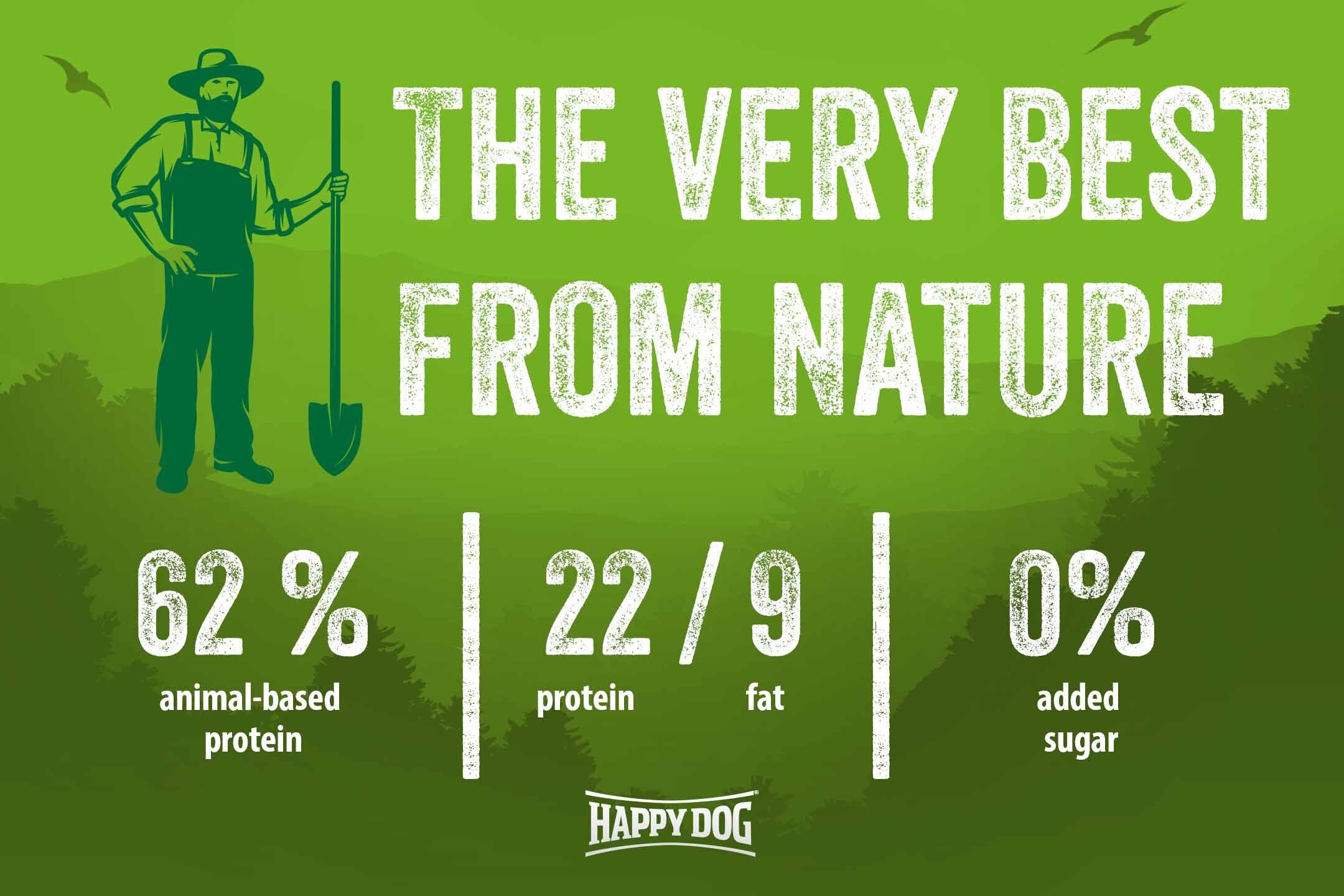 Does your dog have a sensitive gastro-intestinal tract? Then they’ll love Happy Dog NaturCroq Lamb & Rice, the easy to digest all-in-one food made from the best ingredients from Bavaria. The tasty, hard-baked kibbles contain only the best quality ingredients – easily digestible lamb, well-tolerated rice and healthy whole grain from the local area. The lamb meat provides your pet with high-value animal protein, and the rice is an excellent source of carbohydrate and is gentle on the stomach and intestine. Whole-grain products provide important fibre. In addition, they regulate the bowel function, satisfy the appetite, and promote digestion. They can also act to support intestinal health. What’s more, they supply numerous B vitamins and minerals, such as magnesium, iron, selenium and zinc, and are full of complex carbohydrates. The tasty formulation is rounded off with locally-grown herbs, to provide your four-legged friend with a range of valuable nutrients from a natural source.