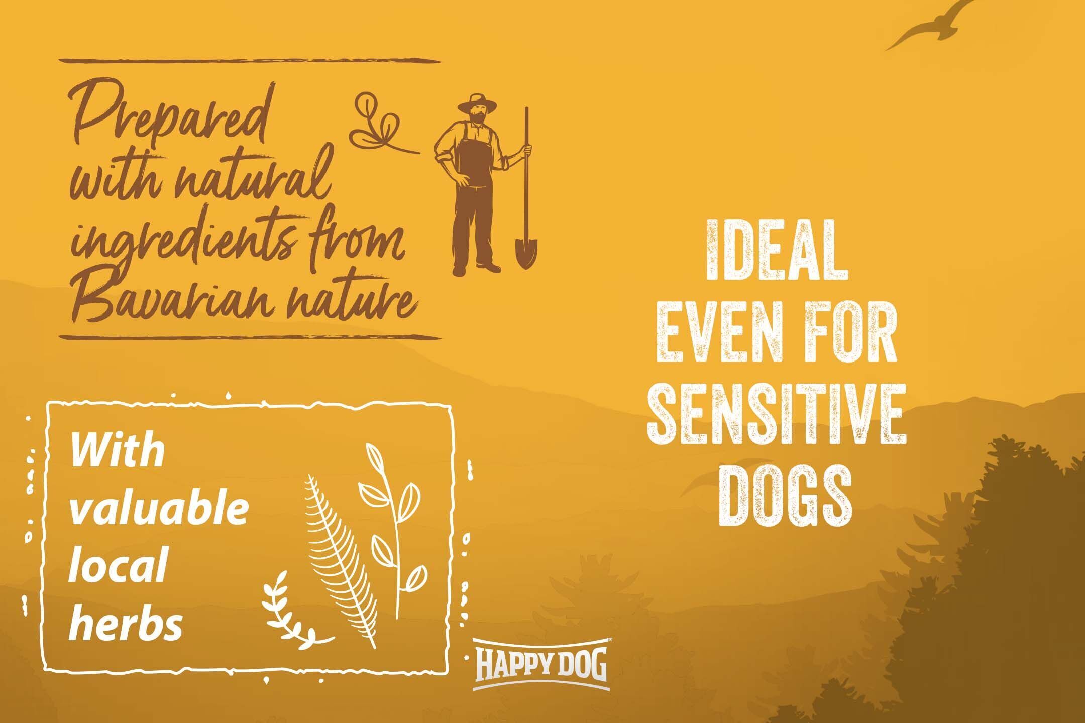 Does your dog have a sensitive gastro-intestinal tract? Then they’ll love this digestible, balanced complete food with the finest ingredients from the Bavarian countryside. The tasty kibbles contain high-quality ingredients such as easily digestible poultry, well-tolerated rice and naturally healthy whole grain from the region. Poultry provides your dog with high-value animal protein, and rice is a carbohydrate source that’s particularly gentle on the stomach and intestine. Whole-grain products supply the body with important fibre. In addition, they regulate the bowel function, satisfy the appetite, and strengthen the digestive system. They can also act to support intestinal health. Whole grain products also supply numerous B vitamins and minerals, such as magnesium, iron, selenium and zinc, and are full of complex carbohydrates. The delicious and exclusive formulation is enhanced with locally-grown herbs, to supply your four-legged friend with valuable nutrients from natural sources.