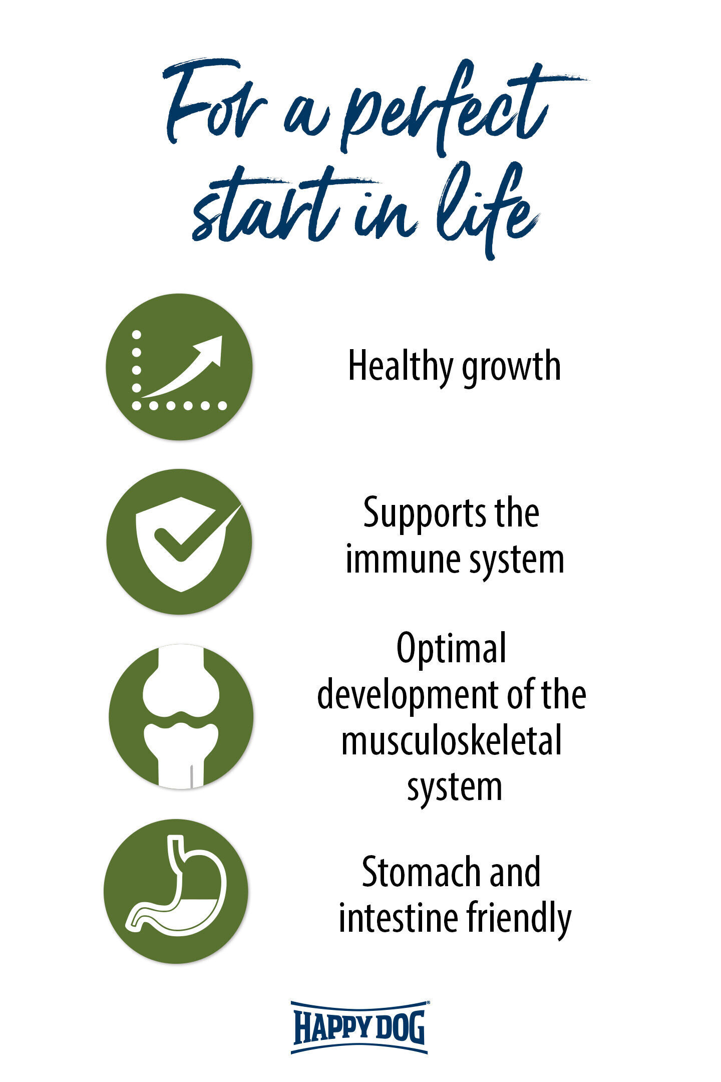 We only want the best for our little four-legged friends. Even in the very first weeks it is important to ensure a healthy and balanced diet that is perfectly matched to the puppy’s needs. Our Happy Dog Sensible Puppy Lamb & Rice combines very well tolerated lamb with easy-to-digest rice. The poultry-free recipe is especially suitable for dogs with sensitive stomachs. The addition of valuable New Zealand mussels supports steady growth and healthy development of the bones, tendons, ligaments and joints. The perfect ratio of fats and proteins gives your little pet the ideal amount of important ingredients. Based on the Happy Dog Natural Life Concept®, your dog is supplied with all he needs to benefit his body holistically, giving him a care-free start to a long and healthy life.