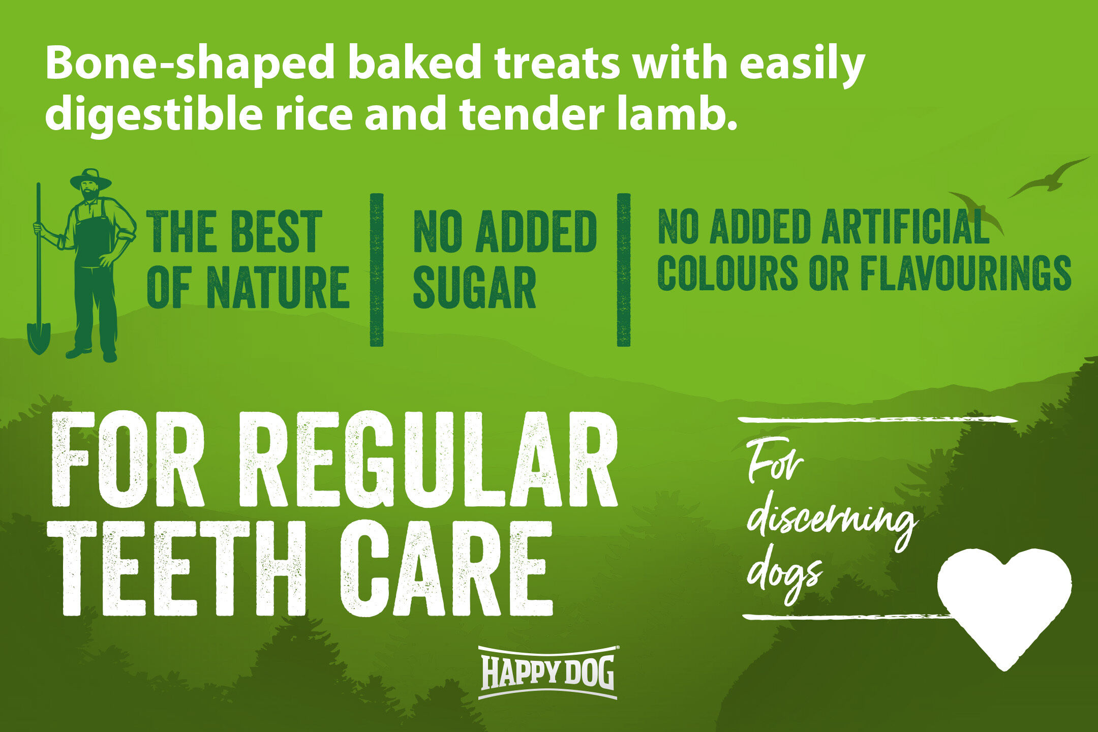 These hearty, crispy bone-shaped dog biscuits with easily digestible rice and tender lamb will spoil your four-legged friend every day. Medium-sized dogs can be given up to ten of these delicious dog biscuits per day as a treat, and for large dogs weighing over 30 kg, you can feed up to 17 bones per day. These delicious dog biscuits are baked in the oven until golden brown, without any artificial colours, flavours or preservatives.