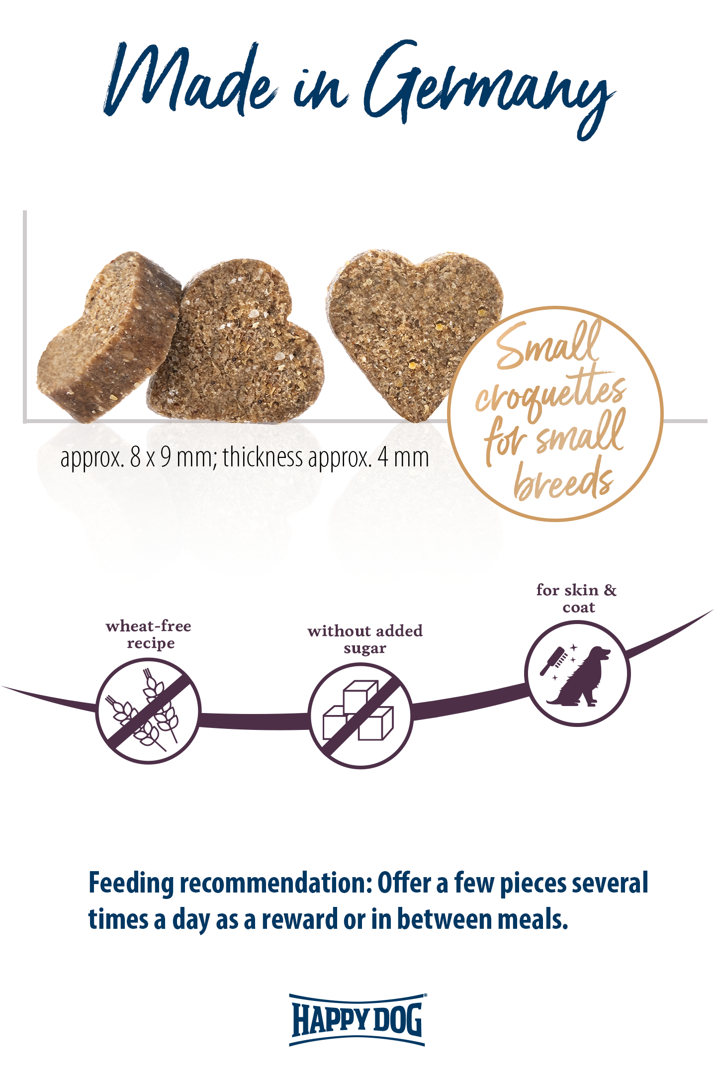 Treats for little dogs with valuable fatty acids for a glossy coat