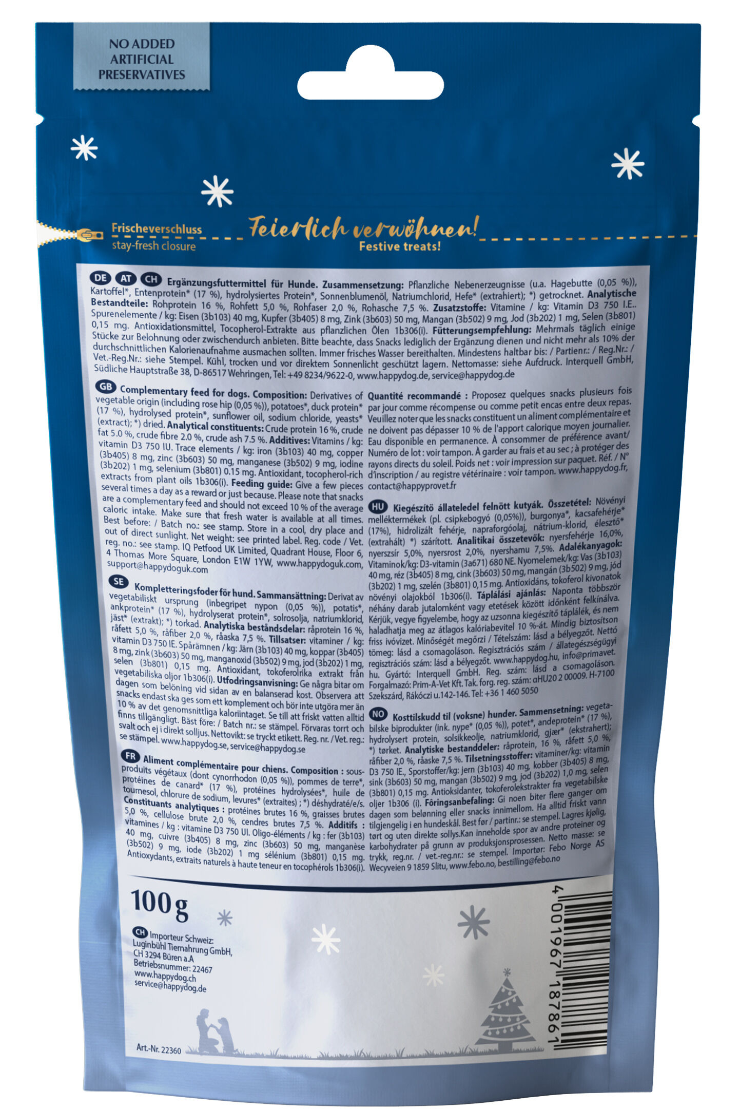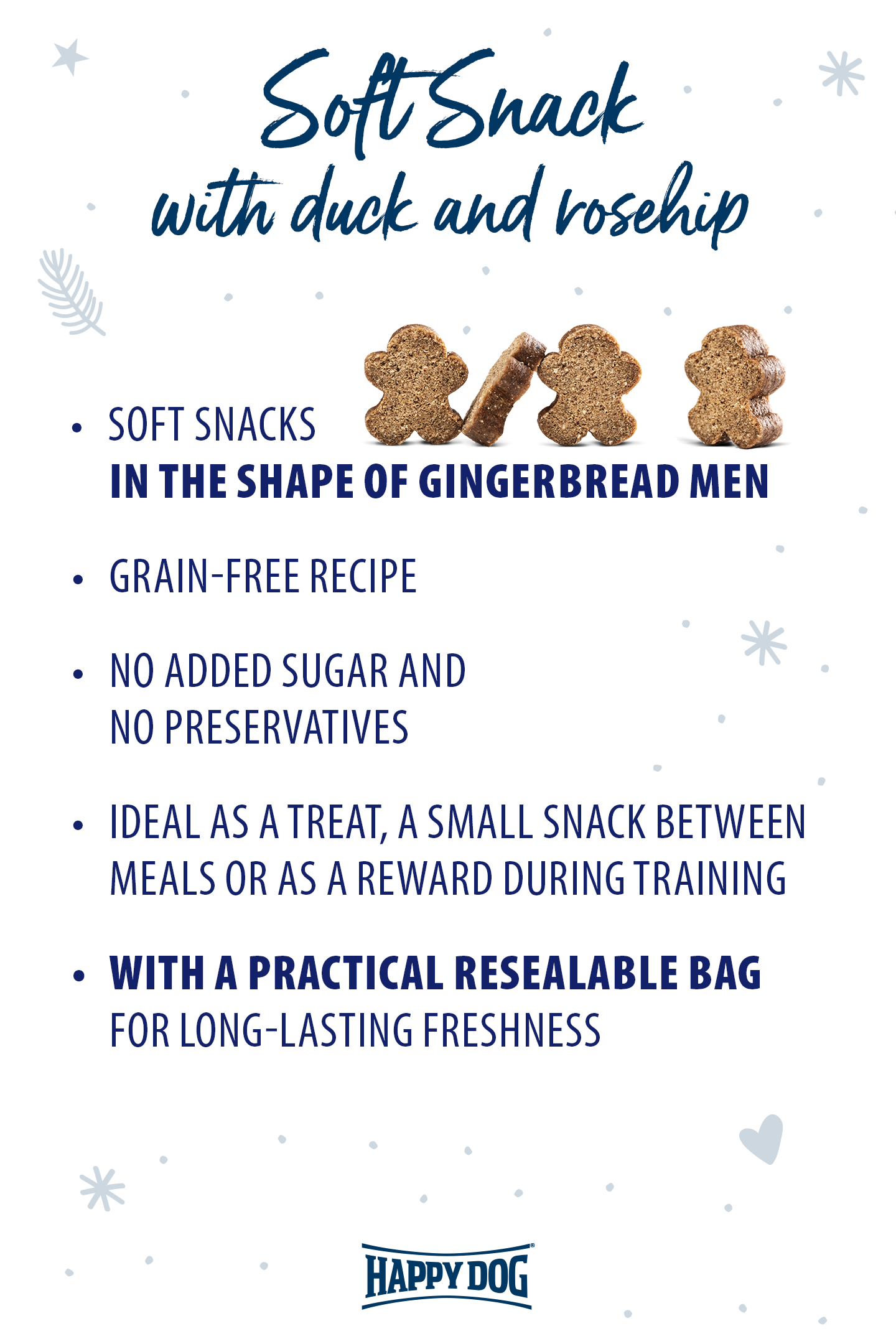 Make your dog happy and get the limited edition Happy Dog Winter Snacks with duck and rosehip now.