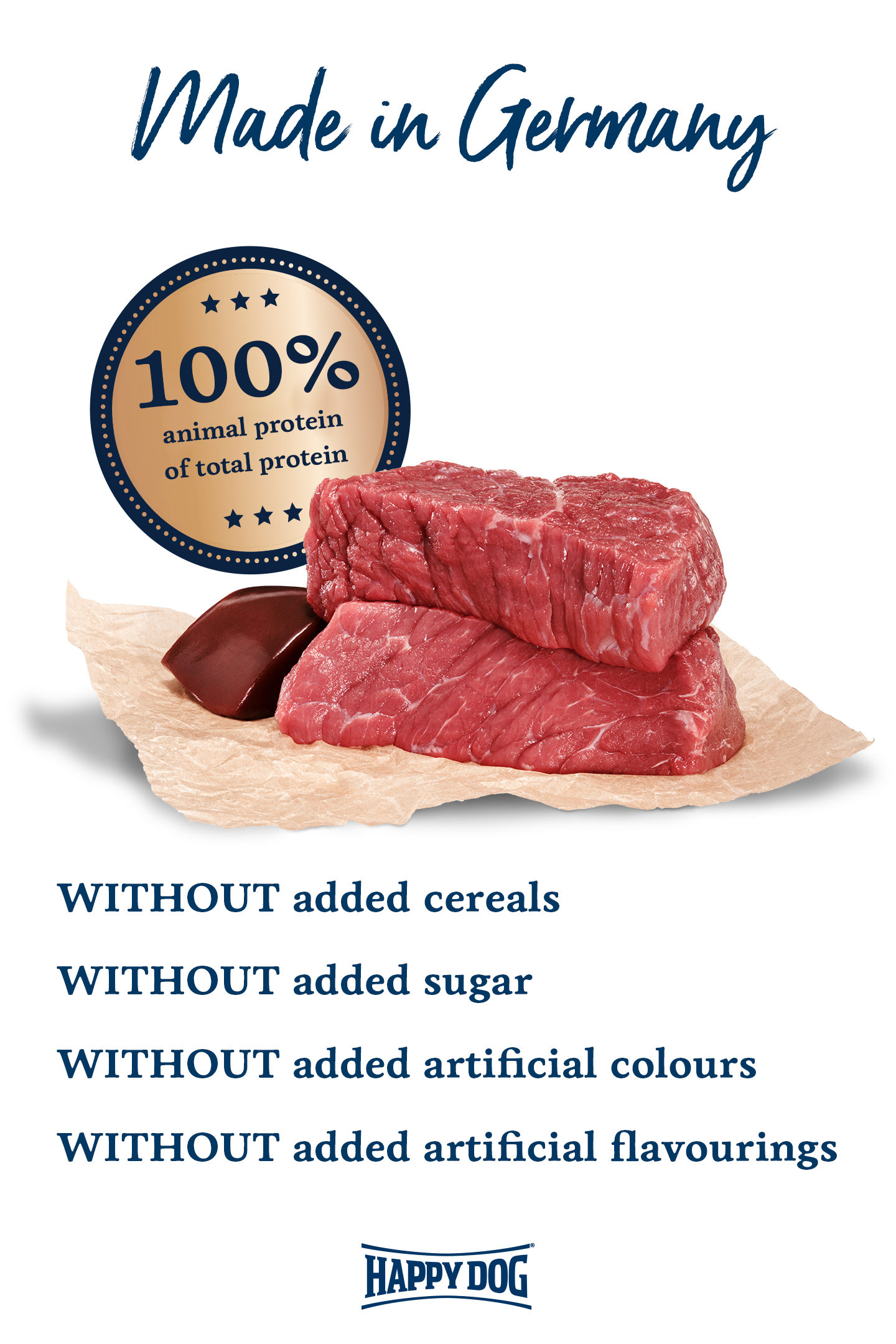 With Happy Dog Sensible Pure Italy premium wet dog food you are filling your dog’s bowl with pure natural goodness. Our high-quality wet food is made from 100% valuable buffalo and contains vital vitamins and minerals. The wet food is free from soya and other plant-based ingredients.