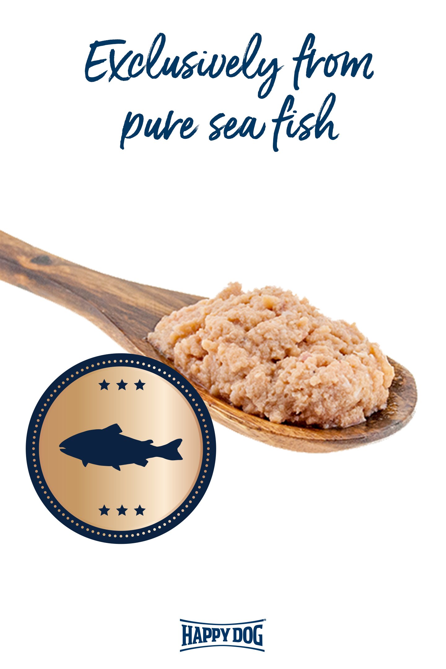 With Happy Dog Sensible Pure Norway premium wet dog food you are filling your dog’s bowl with pure natural goodness. Our high-quality wet food is made from 100% valuable white fish (cod, plaice) and fine salmon and contains vital vitamins and minerals. The wet food is free from soya and other plant-based ingredients.